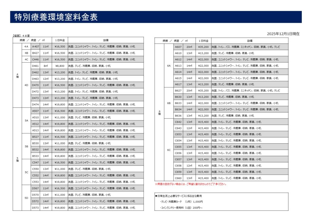 特別室料金一覧