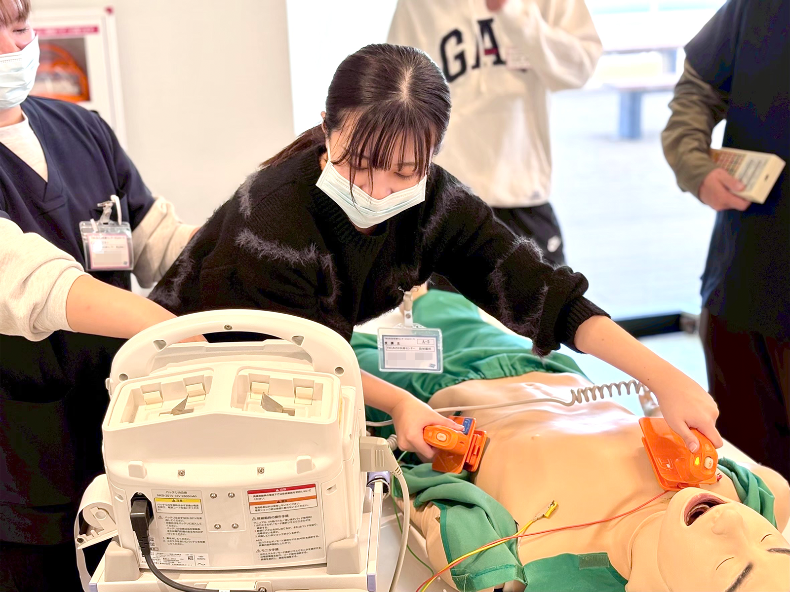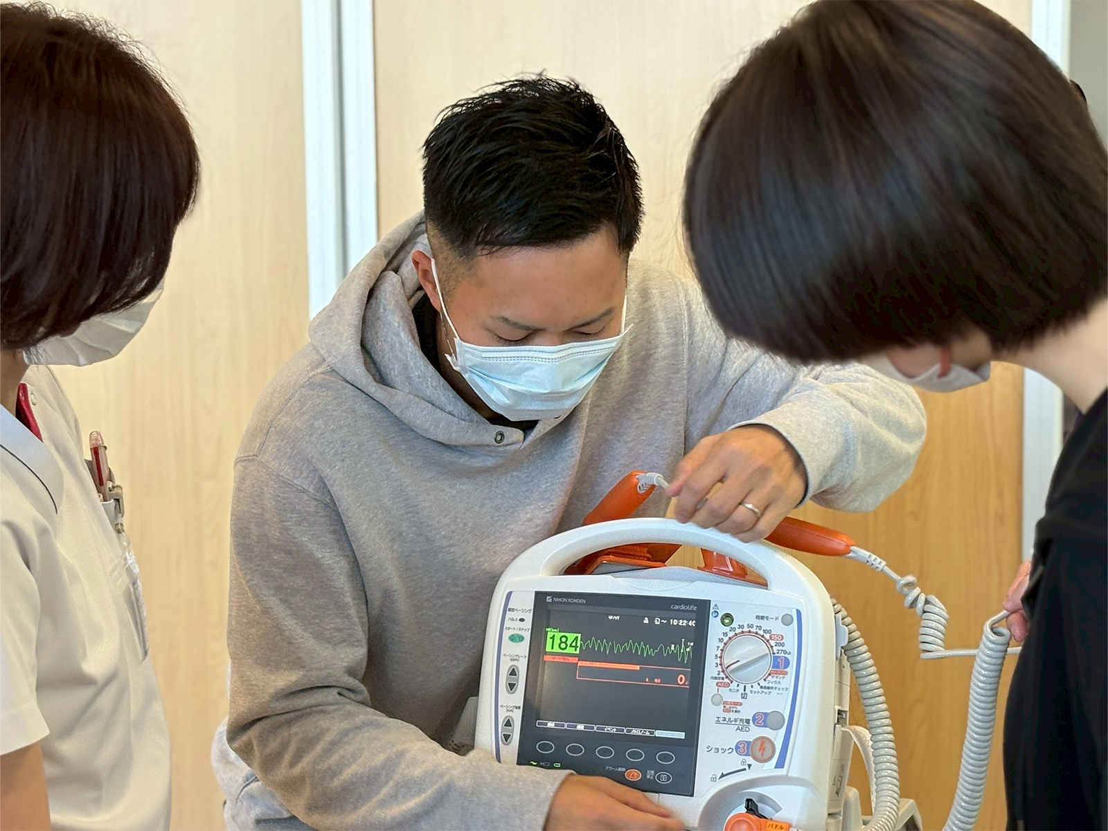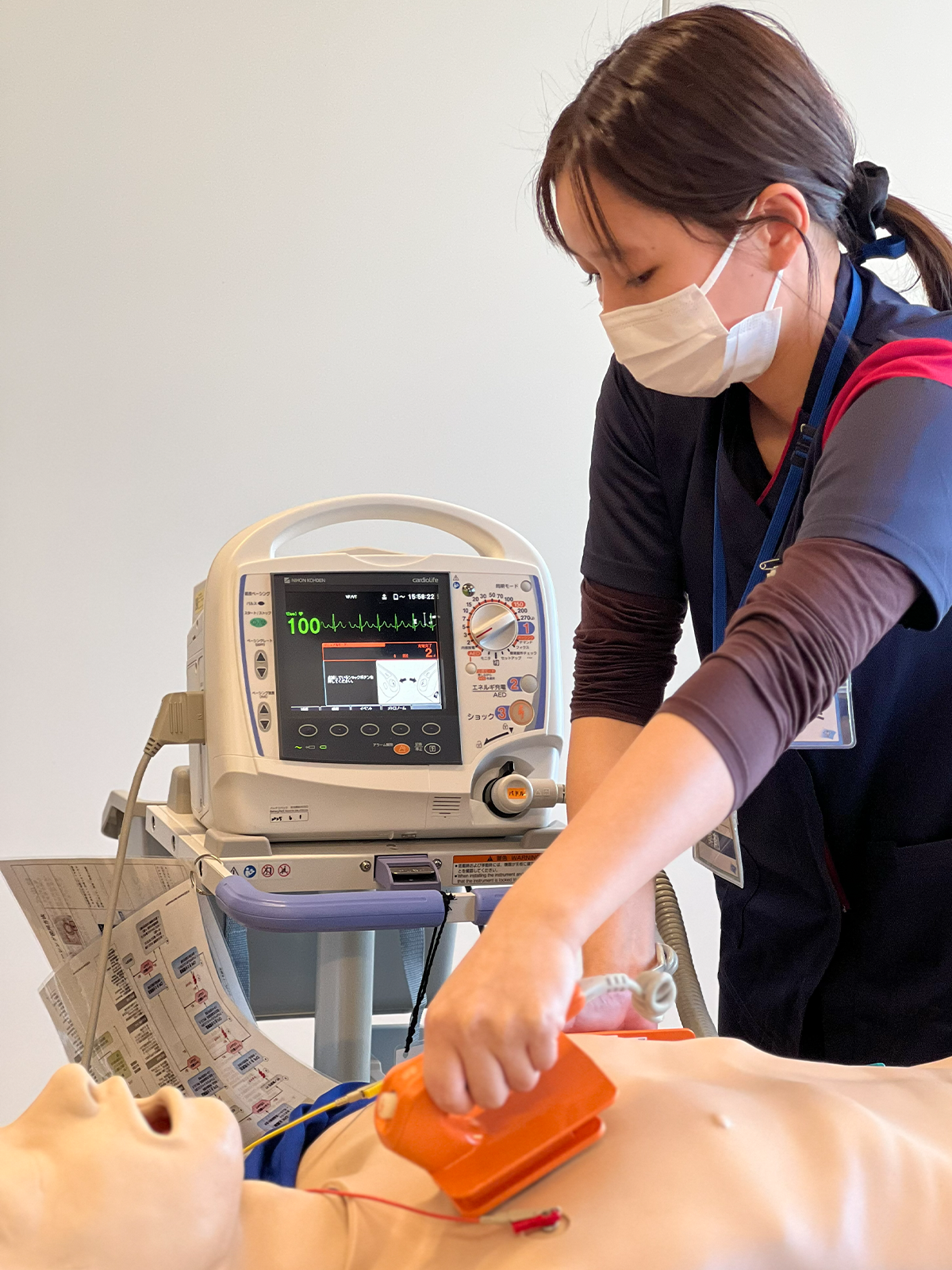 当院で実際に使用している除細動器を用い、基本操作から実践的な使用方法までを学びます。