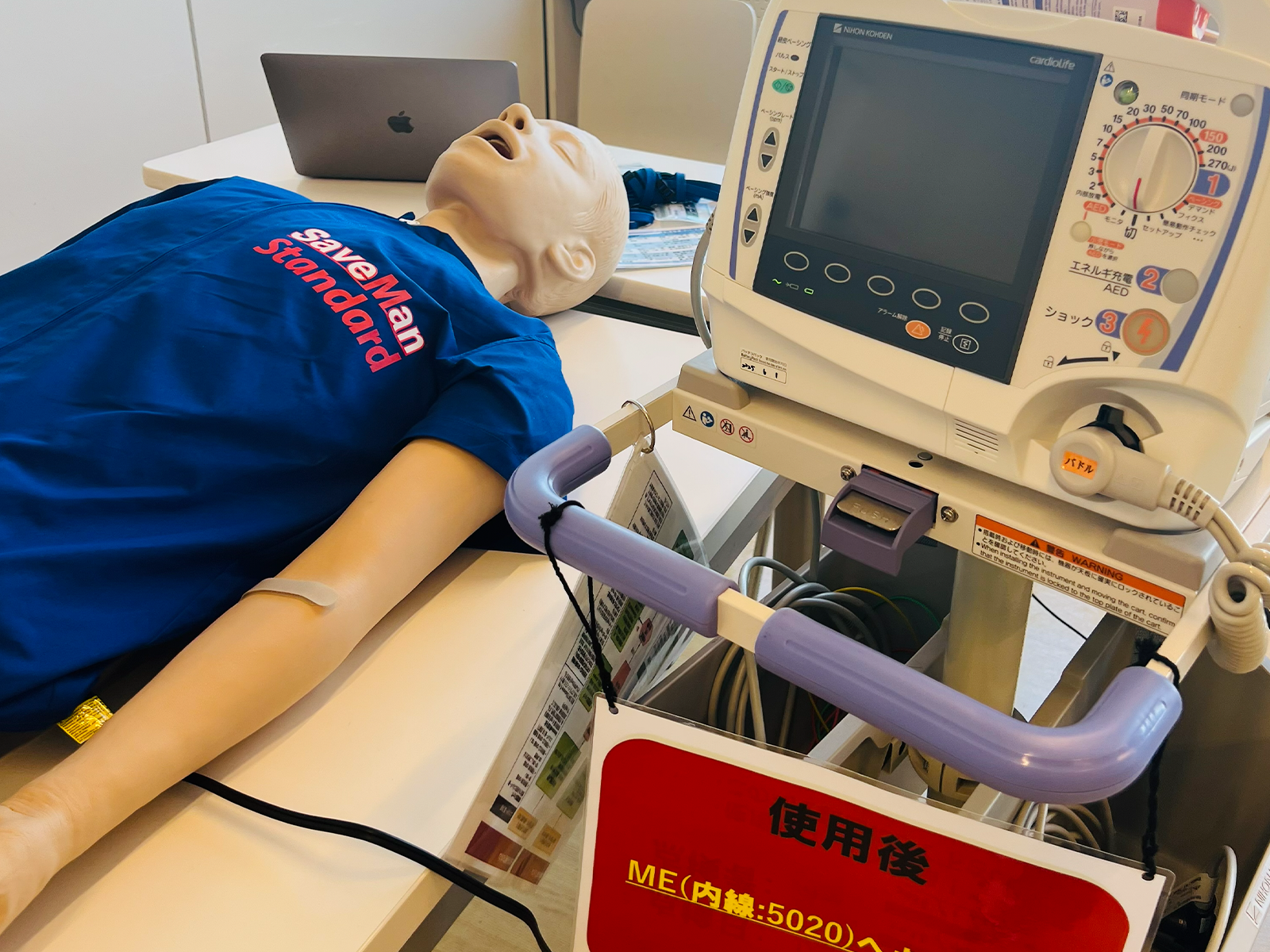 当院で使用しているトレーナーの人形と除細動器です