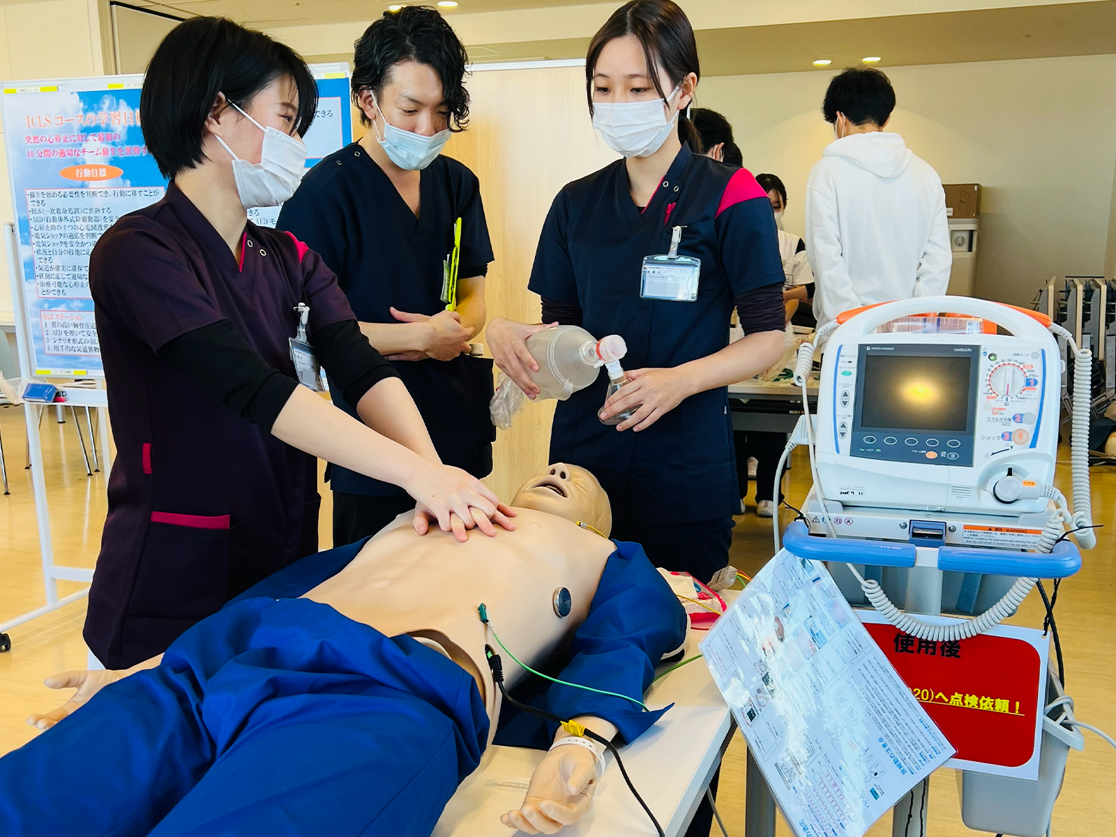 ICLSは、院内で急変が起きた際に備え、現場での対応に自信をつける為の研修です。インストラクターは、その技術を習得するためのサポートを行う役割を担っています。