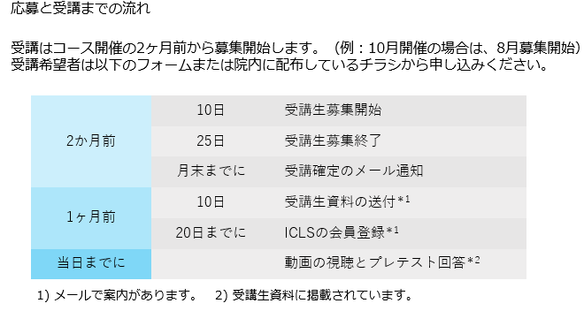 地域枠は限られており、多数応募の場合いは先着順とし、受講できなかった場合は次回のコース開催をご案内させていただきます。