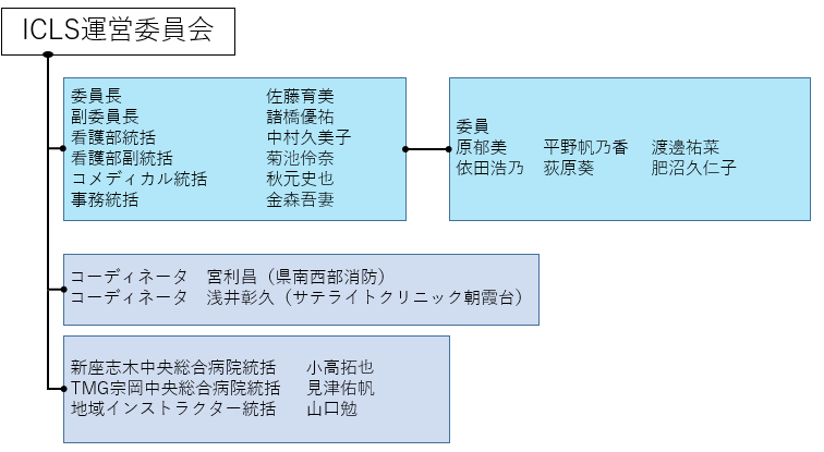 この度、ICLS運営委員会の代表を拝命しました。TMGあさか医療センター 佐藤育美でございます。                           ICLSコースは、蘇生技術の普及を通じて多くの命を繋いできました。この歴史ある組織において、運営の一翼を担うことに身の引き締ま る思いです。現在、教育手法の多様化や質の向上など、我々にも求められる役割は更に広がっています。代表として、全国のインストラクターや運営に携わる皆様の声を丁寧に汲み上げ、現場の熱意を委員会の施策につなげる「橋渡し役」に徹したいと考えております。