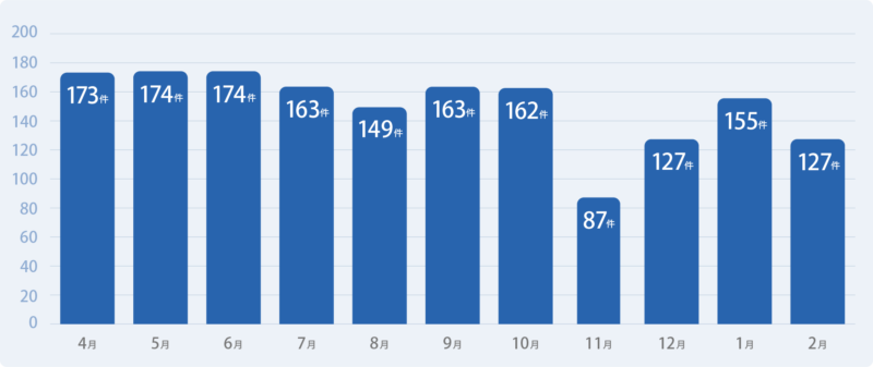 月別高気圧合計治療件数(2025年度)