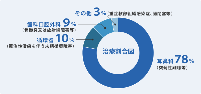 高気圧酸素療法は、厚生労働省が定めた疾患に対して保険適用となります。