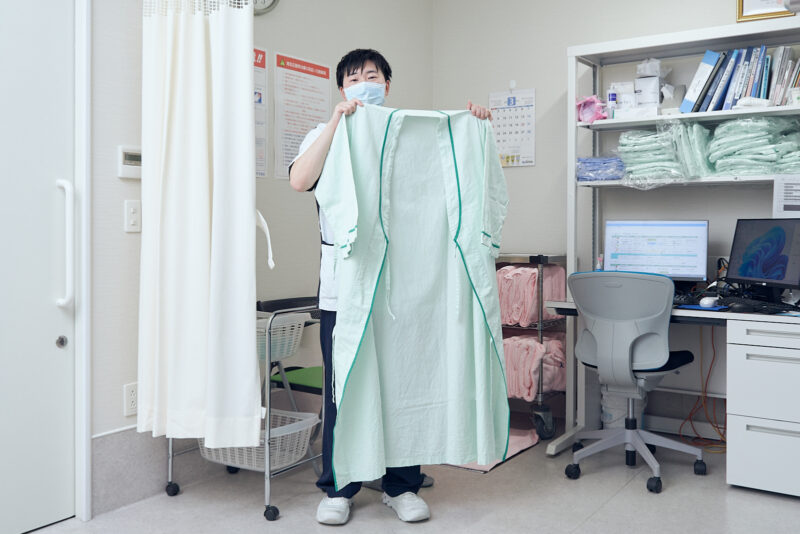 綿100%の下着がない場合、または表示が確認できない場合は、下着を外し、タオルを羽織った状態で治療着を着用していただきます。