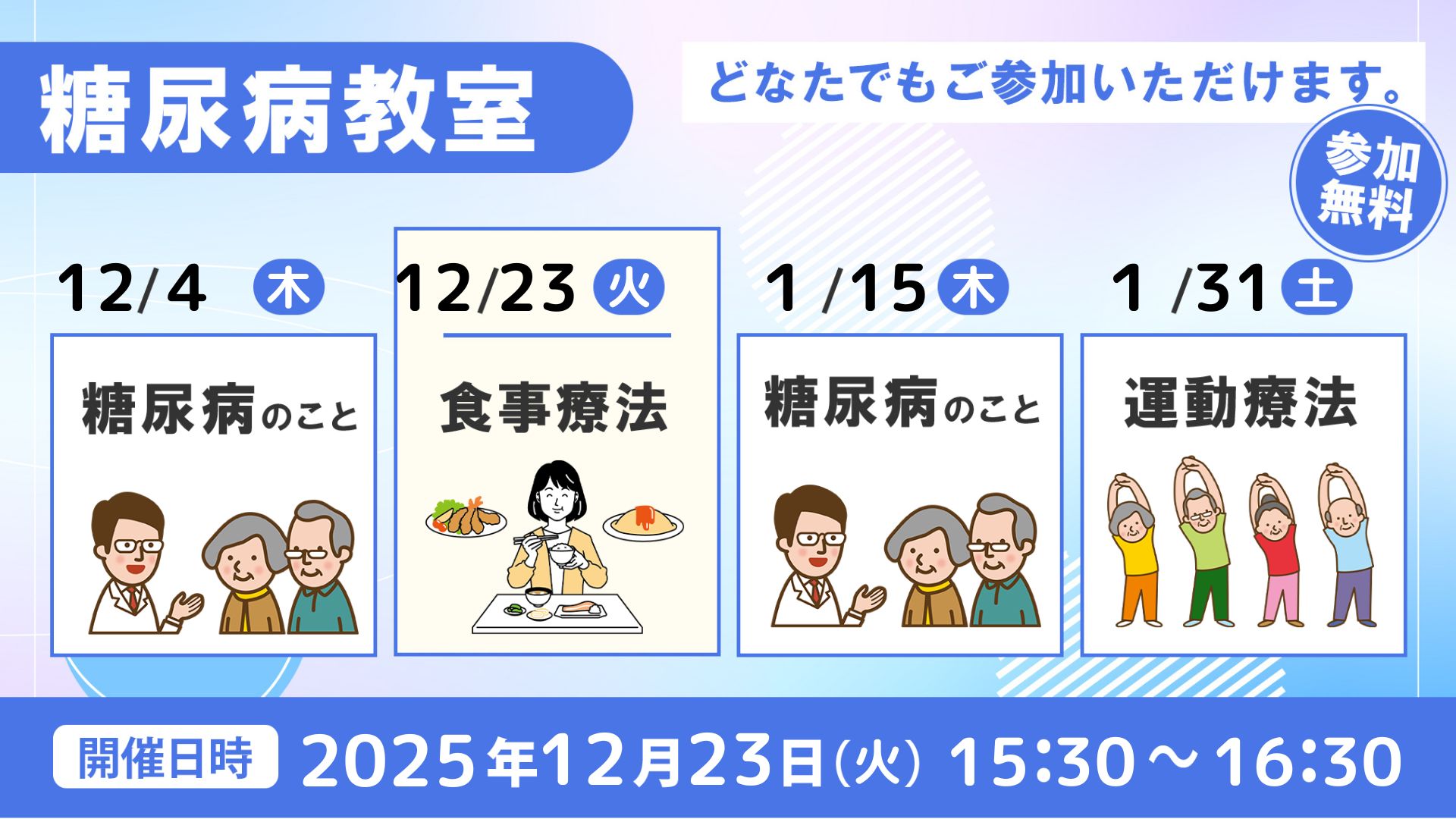 全4種類のテーマに分けて「糖尿病の正しい知識や治療方法」を学んでいただく教室です。