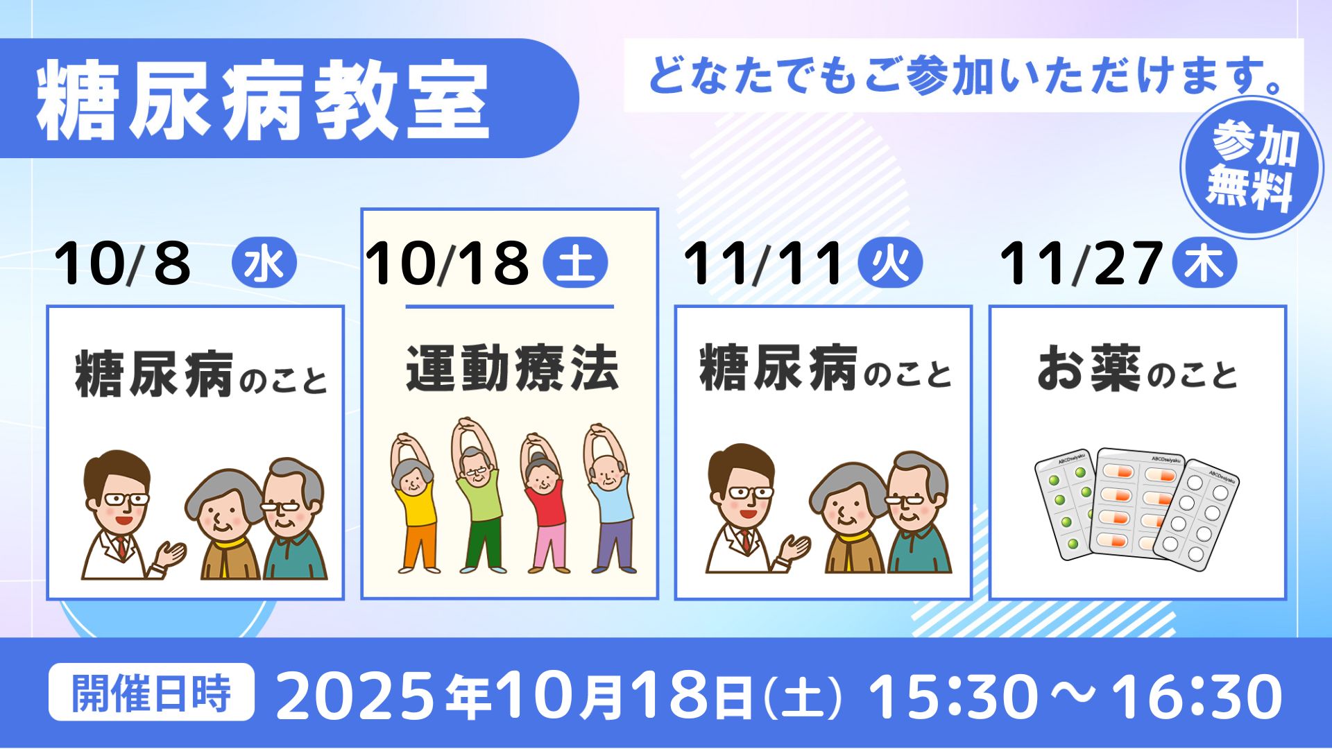 全4種類のテーマに分けて「糖尿病の正しい知識や治療方法」を学んでいただく教室です。