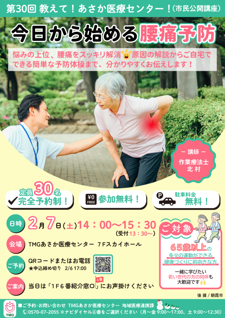 | 場 所 | TMGあさか医療センター7階(スカイホール) |